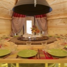 من المؤشرات المهمة للمشروع المادة التي سيتم تركيب المنزل منها. عادة, تم تشييده من ميني بار, ولكن يمكنك أيضًا استخدام لوحة ذات حواف. يجب حساب التصميم الداخلي بحيث يتم تقسيم مساحة الغرفة إلى قسمين: الجزء الكبير مخصص للطاولة ، والجزء الأصغر مخصص لمنطقة الاستجمام..