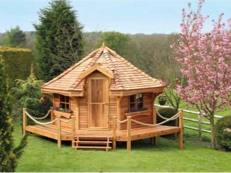 يتميز المنزل ذو الزوايا السبعة بوجود عدم تناسق ، وذلك بفضل شكله المثير للاهتمام وجانبه الإضافي ، ويمكن تزيينه في الأصل بأي نمط. أما بالنسبة للمثمن ، فقد تم اختياره للشرفات الفنلندية الكبيرة ، المصممة لعائلة مكونة من 6 أشخاص. تركيبه مكلف وشاق ، لأن البناء يتطلب الكثير من المواد. ولكن تجدر الإشارة إلى أن شرفة المراقبة المثمنة هي الأكثر جاذبية وفخامة..