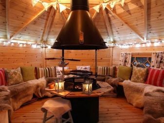 أتاح بيت الشواء المريح فرصًا رائعة للاستراحة من صخب المدينة في قطعة أرضه الخاصة. من أجل الاستمتاع الكامل بجمال النار وإرضاء الضيوف بجو عائلي ، تحتاج إلى توفير التصميم الأصلي للغرفة. تحظى المنازل الفنلندية المزينة على الطراز الاسكندنافي بشعبية كبيرة بين المصممين. يتم التأكيد على الطبيعة الداخلية للداخل في هذه الحالة من خلال الزخرفة الخشبية للجدران. ستساعد أيضًا تركيبات القرع المزخرفة والأقماع وحياكة البصل أو الفطر في جعل الغرفة غير عادية..
