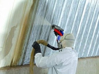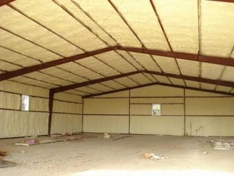 خيار رائع لمرائب شل. على سبيل المثال ، من الصعب إلى حد ما عزل المواد المموجة بألواح ؛ مطلوب إطار إضافي. كل هذا سيستغرق المزيد من مساحة البناء الصالحة للاستخدام. عملية تطبيق طلاء العزل الحراري هي نفسها المستخدمة في الطلاء التقليدي. يجب تحضير السطح. ضع طبقة من 1 مم ، الطبقة الثانية فقط بعد أن تجف الطبقة السابقة تمامًا. طبقتان للعزل كافية تمامًا. يمكن تطبيق الطلاء على الجدران والسقوف والبوابات. لا تفرض أي حمولة إضافية على هيكل المبنى..