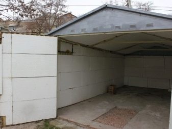 يتم وضع إطار للخراطة حول المرآب. يستخدم البوليسترين أو البينوبليكس كعزل. اللحامات مختومة برغوة البولي يوريثان. انحياز يستخدم كسوة. إذا كان السقف يحتوي على نظام الجمالون مع منحدر واحد أو اثنين ، فعندئذٍ: