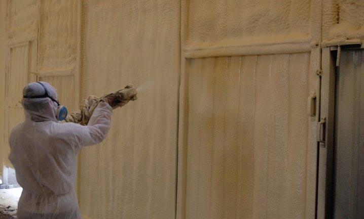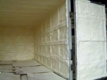 يجب أيضًا إعداد سطح جدران المرآب ، مع إيلاء اهتمام خاص لبقع الزيت – لا ينبغي أن تكون كذلك. يجب ألا تقل درجة حرارة الهواء في المرآب عن 10 درجات مئوية. كلا الجدران والسقف معزولان. يتم رش رغوة البولي يوريثان باستخدام معدات خاصة تحت الضغط ، تذكرنا إلى حد ما بعملية الصباغة. يتم خلط المكونات وعند المخرج تعطي نفس التفاعل الذي تتشكل بسببه الرغوة. تصلب المادة بسرعة كبيرة. الفرق بين رغوة البولي يوريثان و penoplex هو ذلك يعطي صلابة إضافية للهيكل ، لا يلزم الغراء. يجب أن يكون سمك الرغوة المشكلة 3-4 سم ، وللمقارنة ، هذا يستبدل 5 سم من الصوف المعدني.