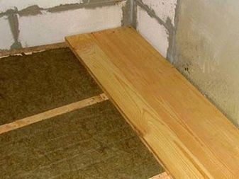 بدلاً من ذراع التسوية ، يمكنك وضع لوحة اللسان والأخدود. للقيام بذلك ، يتم وضع جذوع الأشجار الخشبية على الصرف بخطوة 30-40 سم ، فيما بينها يتم توسيع البوليسترين أو البوليسترين. يجب سد جميع الشقوق بالرغوة. إرفاق لوحات من أعلى إلى جذوع الأشجار. يمكنك وضع مشمع كطبقة علوية. من الأفضل أن تبدأ أي عزل للجراج عن الأرض..