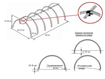 - يبدأ تجميع الهيكل السلكي الآن على الأساس. للقيام بذلك بنفسك ، يتم تثبيت قوس نهاية واحد وتوصيله بالعلاقات من الأسفل. يتم تثبيت القوس الأول للخطة الوسيطة في المحملات على أذرع التسوية من الأسفل والاتصال اللاحق بالنهاية باستخدام وصلة مرور بطول 65 سم. ثم يتم إصلاح أقواس النوع الوسيط. نقوم بتثبيت الجدار من النوع الثاني ، وربطه بالعلاقات العلوية والسفلية الموجودة على الجانبين.