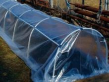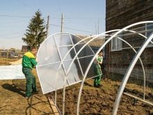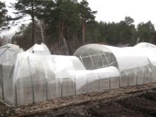 إذا كانت لديك ميزانية محدودة وترغب في زراعة الخضروات المبكرة ، فمن الأفضل اختيار دفيئة. يمكن تركيبه في مكان ما في منتصف الربيع ، وتفكيكه مباشرة بعد الحصاد. في المساحة الخالية ، يمكنك زراعة أنواع أخرى من النباتات. الخيار الأكثر تكلفة لإيواء الشتلات هو من الفيلم.