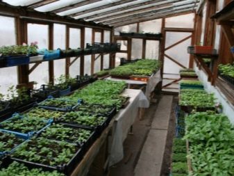 عادة ما يتم ترتيب الأسرة المرتفعة داخل الدفيئة ، وفي بعض الأحيان توجد النباتات على أرفف خاصة..