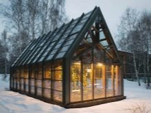 تصميم الدفيئة هو أكثر ضخامة ، وأكثر ضخامة ، وغالبًا ما يوفر تركيب الأساس. تتشابه أنواع البيوت الزجاجية والدفيئات ، على سبيل المثال ، هم الجملون. هذا التصميم أسهل في التنفيذ بنفسك. يمكن اعتبار هذا النوع على مدار السنة ، لأنه في فصل الشتاء لن ينكسر تحت الوزن. يوفر سقف الجملون مجموعة واسعة من مواد الطلاء.