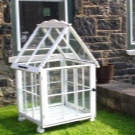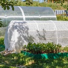 - دفيئة معدنية مقوسة بإطار أبيض ومادة تغطية – بولي كربونات (يمكنك استخدام قماش سبونبوند) ، ستبدو رائعة في كوخ صيفي صغير بجوار مزارع الزهور الطويلة.