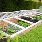 مثل هذا الانتصاب لن يكلف أصحابها غاليا.. لتحقيق ذلك ، ما عليك سوى إطارات النوافذ القديمة. إذا كان الزجاج موجودًا فيها بالفعل ، فيجوز تركها في أماكنها واستخدامها كبديل لمادة التغطية الرئيسية. إذا كانت الإطارات فارغة ، يُسمح بعد التثبيت بتكميلها بفيلم أو تركيب ألواح البولي كربونات في المناطق الفارغة.