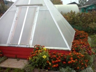 الأكثر شعبية هي هياكل الجملون. لا تعتبر سهلة الاستخدام فحسب ، بل تبدو لطيفة أيضًا. في كثير من الأحيان ، تصبح البيوت الزجاجية ذات الجملون الطويلة المزخرفة بالزجاج زخرفة حقيقية للموقع ، خاصةً إذا كانت تزرع فيها النباتات الجميلة والملونة ، على سبيل المثال ، الزهور.