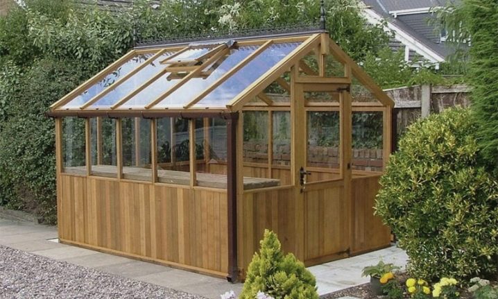 يصنع معظم سكان الصيف دفيئات الجملون من الخشب. سيكونون قادرين على زراعة الطماطم والمحاصيل المماثلة الأخرى. في أحد نصفي نهاية هذه المباني ، يتم تثبيت ورقة باب ، والتي ستكون مسؤولة عن وصول الشخص إلى المزارع لرعايتها..