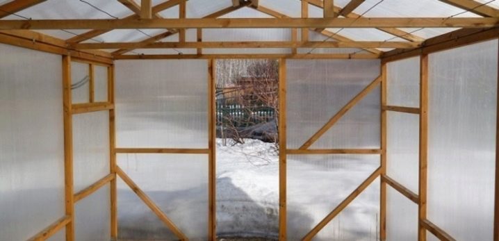 سيتكون إطار مثل هذا الدفيئة من رفوف وأشرطة سفلية. عادة ما تكون الأخيرة مصنوعة من ألواح من نفس الحجم. في الوقت نفسه ، يجب تثبيت عناصر مثل الرفوف على نفس المسافة من بعضها البعض ، بحيث يمكن للإطار الوقوف بينها بسهولة. لبناء سقف ، يوصى باستخدام قضيب ، حيث يتميز بخصائص قوة جيدة. بالإضافة إلى ذلك ، بتفاصيل مماثلة ، ستتم حماية الدفيئة من الأضرار الناجمة عن الثلوج الكثيفة في الشتاء..