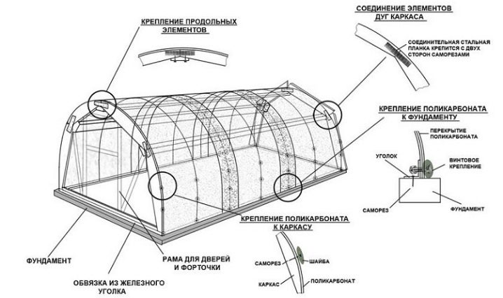 أما بالنسبة لربط الإطارات بالأجزاء الداعمة ، فمن الأفضل استخدام البراغي والمسامير.. سوف تحتاج إلى إصلاح الإطار من الداخل والخارج. ستحتاج جميع الفجوات المتبقية أثناء تجميع الهيكل إلى الرغوة. من الأفضل إنهاء سقف مثل هذا الدفيئة ، مثل الجدران ، بألواح البولي كربونات أو رقائق معدنية. في مثل هذه الظروف ، ستتلقى المزارع كمية كافية من ضوء الشمس الطبيعي..