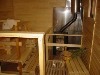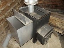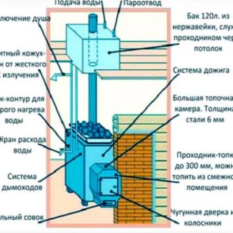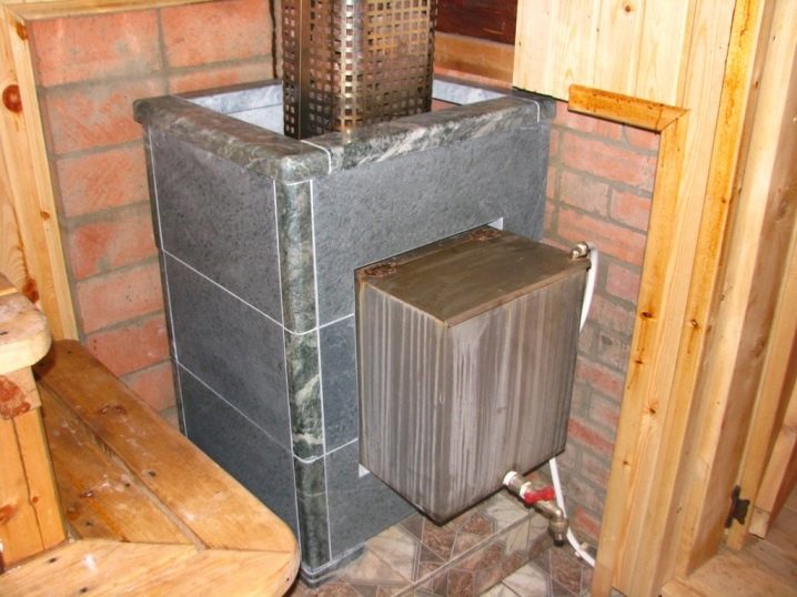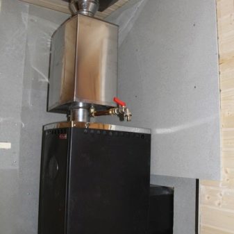 - خزان المياه. يتم تثبيته على أنبوب المدخنة إذا كان الحمام مزودًا بإمدادات المياه. في هذه الحالة ، يمكنك الاستحمام ؛
