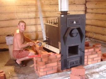 - في المنطقة المجاورة لغرفة الفرن ، يتم استخدام الطوب الحراري. الطوب الكسوة مسموح به في مناطق أخرى. تمتلئ جيوبه بالرمال العادية.