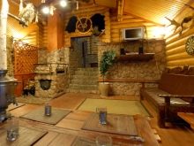الحمامات الحديثة كبيرة الحجم. بالإضافة إلى ذلك ، هناك صالات ، غرفة استحمام ، حمام سباحة ، شرفة أرضية. الصالة مجهزة بأثاث إضافي (تلفزيون بلازما وكراسي بذراعين وأريكة وطاولة). يتم استبدال موقد الطوب القديم بهيكل معدني محمول.