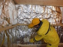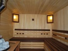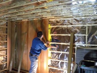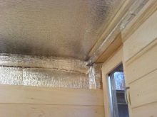 نقطة أخرى مهمة هي تغليف الجدران الداخلية من مادة مانعة لتسرب المياه وأفضلها كل البلاستيك. استخدم رقائق معدنية واترك فجوة هوائية بينها وبين الجدران. يمكنك بناء منزل ساونا بالكامل من شجرة بمفردك..
