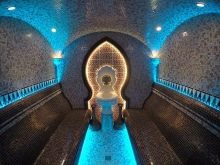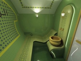 يشير الحمام التركي الصغير من حيث المساحة إلى أنه سيتم دخوله لمدة 10-20 دقيقة على الأكثر مرتين في الساعة. يفضل استخدام منطقة متواضعة لأنه بخلاف ذلك ستكون هناك حاجة إلى مولد بخار قوي للغاية.. بالنسبة لأربعة أشخاص ، يكفي حجم 250 × 250 سم.