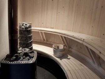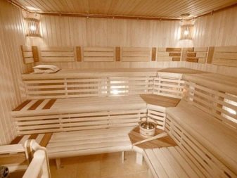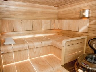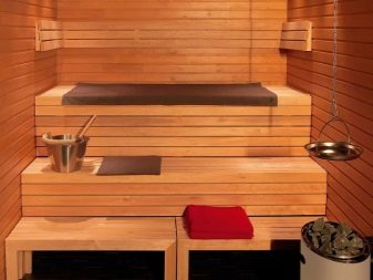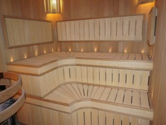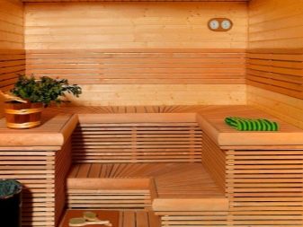 ولكن هناك استثناء: في الحمام الصغير لن يكون من الممكن وضع طاولة التدليك. في أي حال ، يجب أن تأخذ في الاعتبار أن السطح الخارجي والجدران والعزل الحراري سوف يمتص سمكًا لا يقل عن 7-10 سم. الحمامات تصمم أسطح جلوس مسطحة بالإضافة إلى مناطق الكذب.. يجب أن تكون المقاعد مزودة بظهر, يُنصح باستخدام المقاعد التشريحية وكراسي التشمس.