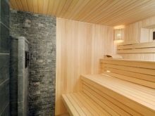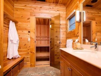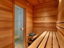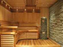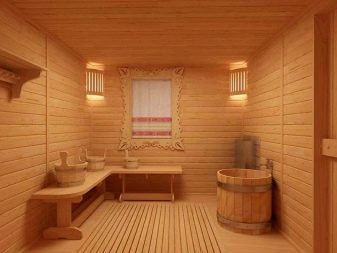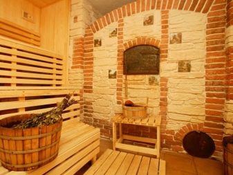 يجب إيلاء أقصى قدر من الاهتمام لتزيين غرفة البخار, المادة الرئيسية في هذه الحالة هي بطانة الخشب على الجدران والبلاط على الأرض. يتم التعبير عن الإخلاص للتقاليد من خلال موقد يبدو طبيعيًا وبسيطًا. كملاذ أخير ، يمكنك تجربة تصميم مصنوع من الحجر الطبيعي أو إدخالات فردية مصنوعة من الزجاج المقاوم للحرارة..