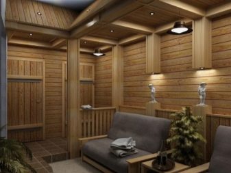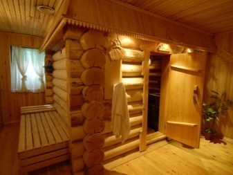 في الحمامات المدمجة والمرتبطة بالمنازل ، غالبًا ما تكون المقصورة الأولية غائبة تمامًا. لكن مع الهيكل المستقل ، من الضروري ، لأنه يضمن أن الهواء البارد لا يبرد الغرفة بأكملها عند فتح الباب. دائمًا ما تكون غرفة الملابس معزولة بشكل صحيح. بالنظر إلى أن إجراءات الاستحمام تتم بشكل أساسي في المساء ، فإن الأمر يستحق الاهتمام بالإضاءة الصلبة والموثوقة..