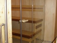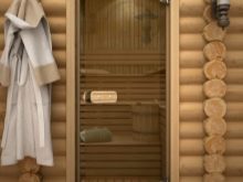 باب خشبي أعمى لغرفة البخار هو حركة تقليدية ؛ يمكن تقديم امتياز لمبادئ التصميم الحديث بباب زجاجي. هذه الخطوة هي بالتأكيد أفضل من وجهة نظر السلامة (سيكون من الأسهل التحكم في ما يحدث من الداخل من الخارج ، وسيكون الخروج أسهل). من الواضح أن الفتحة الخارجية أصح من الفتحة الداخلية ، لأنها لا تمتص المساحة الحرة في غرفة البخار.
