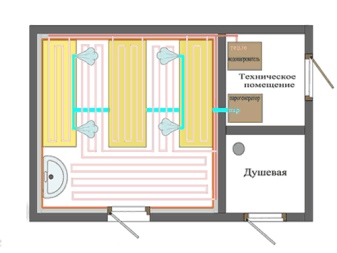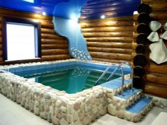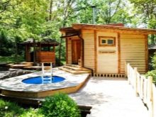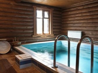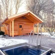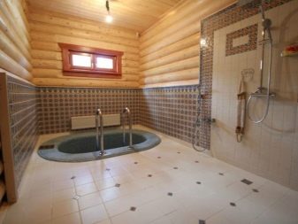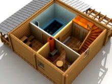 الميزة الجانبية لهذا الحل أنه يمكنك الذهاب للغسيل في أي طقس ، مباشرة من غرفة المعيشة. بناء حمام الطابق السفلي ، مع العناية الواجبة ، يمكن لأي شخص الوصول إليه ، حتى بدون تدريب خاص..