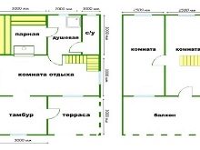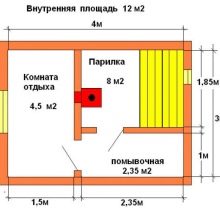 من المهم للغاية تحديد الأبعاد المناسبة للهيكل ، لحساب عدد أولئك الذين سيغسلون في الحمام. وهنا مرة أخرى تم الكشف عن ميزة الهيكل المكون من طابقين. حتى لو كانت أبعاده أقل من 6 × 8 أمتار ، فستتمكن الشركات المكونة من أربعة أو خمسة أشخاص من استخدام هذا المبنى. ولكن في الحالات التي سيكون فيها عدد أكبر من الزوار بالتأكيد ، أو إذا تم التخطيط للجزء العلوي كسكن ، فمن المستحسن جعل المبنى أكثر اتساعًا..