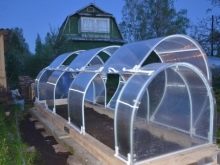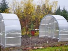 - هيكل على شكل نصف كروي (قوس). هذا النوع من الدفيئة غير مكلف وسهل التجميع. تصميم مشابه لبعض المؤشرات يفقد البيوت البلاستيكية على شكل مستطيل ، ولكنه مناسب أيضًا لزراعة الكروم.