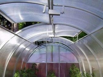 يحتاج التصميم أيضًا إلى تنظيم نظام تهوية للحفاظ على المناخ المحلي. من أجل تنفيذ تهوية الدفيئة في الوضع التلقائي ، من الضروري تجهيز فتحات الهيكل بأسطوانات هيدروليكية. تتفاعل هذه الآلية مع التغيرات في درجة حرارة الغلاف الجوي داخل المبنى. عندما ترتفع درجة الحرارة داخل الدفيئة ، تفتح الفتحات ، وعندما تنخفض درجة الحرارة ، تغلقها.