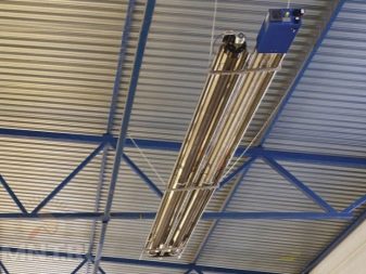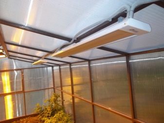 من أحدث الاتجاهات ، سهل التركيب و آمن للإستخدام. تصنع السخانات على شكل مصابيح كهربائية عادية ، متصلة بإطار الدفيئة بطول السقف بالكامل. مبدأ عملهم هو أنهم ينتجون أشعة شبيهة بأشعة الشمس. إنها تسمح لك بتدفئة التربة بعمق ، مع عدم استهلاك الكثير من الكهرباء. الموقع الموجود أسفل السقف مناسب للغاية ، لأن السخانات لا تشغل مساحة ولا تتداخل مع العناية بالنباتات.
