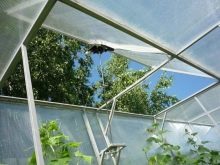 كقاعدة عامة ، في الدفيئة “الذكية” ، يكفي تثبيت رافع تلقائي على النوافذ. ولكن إذا كنت ترغب في ذلك ، يمكنك أيضًا تثبيت نظام تهوية قسري. في هذه الحالة ، يتم أيضًا توصيل المراوح الكهربائية بأقواس إطار الدفيئة. وهي متصلة بالتيار الكهربائي ويتم وضعها في الوضع التلقائي. يعمل النظام ببساطة شديدة: بمجرد أن تسخن الشمس سقف الدفيئة أكثر من اللازم ، يتم تشغيل المراوح تلقائيًا. ولكن من الممكن الاستغناء عن المراوح – لتكملة الفتحات بمحرك أوتوماتيكي. مع ارتفاع درجة الحرارة ، سيتم فتحها ثم إغلاقها بنفس السهولة. وكل هذا بدون تدخل البستاني.