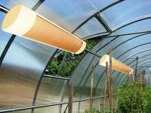 لتسخين الهواء ، يجدر اختيار السخانات الكهربائية. من المستحسن وضعها أعلى. الخيار الأفضل هو إرفاقها بإطار الدفيئة جنبًا إلى جنب مع أجهزة الاستشعار ومخططات الأسلاك. مع هذا الترتيب ، تقوم المستشعرات بقياس درجة حرارة الهواء تلقائيًا ، وإذا كانت أقل من المستوى المطلوب ، فإنها تبدأ في تسخينه.