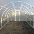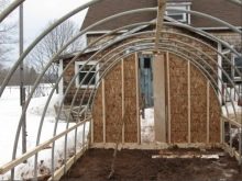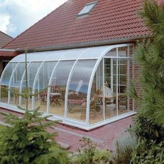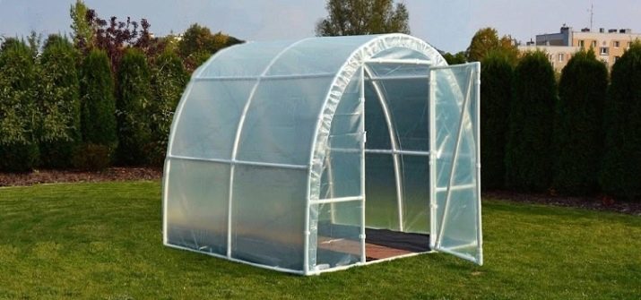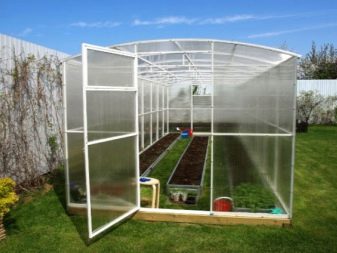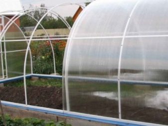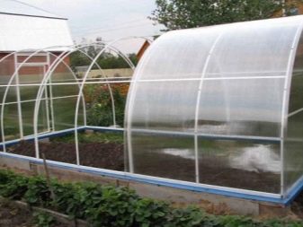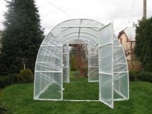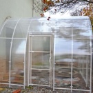 الحلول المقوسة شائعة جدًا أيضًا نظرًا لحقيقة أنها سهلة الصيانة ومتينة ومستقرة تمامًا. لديهم أيضًا عددًا صغيرًا من عقد الاتصال ، وفي داخلها توجد مساحة كبيرة وهناك بالفعل مساحة كبيرة للنباتات. يمكنك إنشاء مثل هذا المبنى ليس فقط من البلاستيك ، ولكن بشكل عام من أي نوع من الأنابيب ، واختيار الأبعاد والارتفاع المطلوبين. عيب هذا النوع من الحلول هو التراكم المتزايد للثلج في الشتاء والانعكاس العالي إلى حد ما للطاقة الشمسية بشكل أفضل.