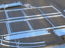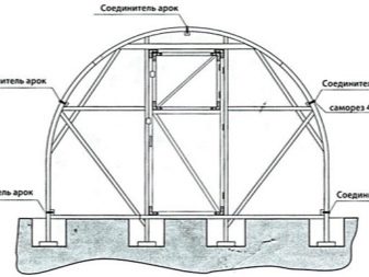 نقوم بتركيب أربطة جانبية مثبتة بالمسامير الخاصة لنسخة الأثاث على ارتفاع متر ونصف المتر من كلا الجزأين من داخل الدفيئة. لإعطاء الهيكل مزيدًا من الصلابة ، من الضروري إرفاق دعامات إضافية من النوع الطولي. بعد ذلك ، تدخل عملية تشكيل الإطار في امتداد المنزل. أولاً ، يتم تجميع فتحات التهوية والأبواب من قطع الأنابيب والزوايا والمحملات وفقًا للمخطط ، ويتم ربط الفتحات بإطارات الأبواب على المفصلات باستخدام براغي ذاتية التنصت. أيضا مفصلات متصلة بإطار الباب.