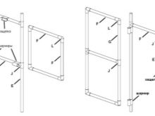 تتمثل الخطوة التالية في أخذ رابطين من النوع الطرفي ، مكونين من ثلاث قطع أنابيب و 2 من نوع المحملات من النوع الواحد لكل ربطة. بعد ذلك ، وفقًا للمخطط الموصوف مسبقًا ، من الضروري تجميع فتحات الأبواب. لهذا الغرض ، يتم تثبيت أقسام الأنابيب في المحملات السفلية ، ثم يتم توصيلها باستخدام المحملات والعبور الخاص. ثم يتم لصق أجزاء الأنابيب عليها ، والتي ستكون بمثابة استمرار للرفوف. بعد فترة ، سيحتاجون إلى القطع حسب الحجم عند توصيلهم بالقوس.