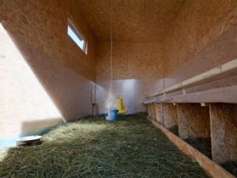 - بالنسبة لمنزل الدواجن بسقف مسطح ، سيكون من الصحيح خفض الغطاء 30-40 سم من السقف ؛