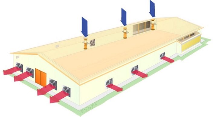 من الممكن تنظيم تدفق الهواء إذا تم تركيب أجهزة مجاري خاصة (العادم والإمداد) في جدران أو سقف حظيرة الدجاج. يجب تركيب هواء الإمداد أعلى بعدة سنتيمترات من إمداد الهواء (مرة أخرى ، باتباع قوانين الفيزياء البسيطة). مثل هذا الجهاز سيخلق مناخًا مناسبًا في الحظيرة للدجاج. لكن لها عيب واحد..