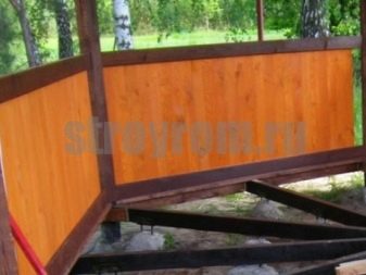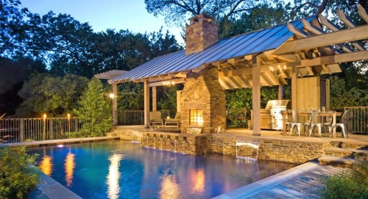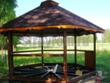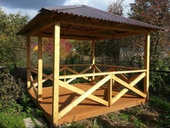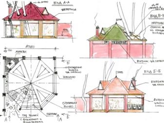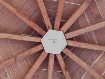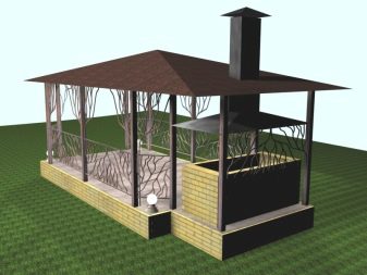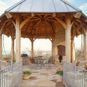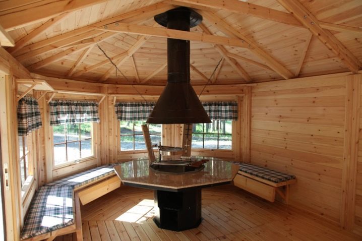 أيضًا ، أثناء البناء ، يمكنك الجمع بين مواد مختلفة – الإطار مصنوع من المعدن ، ويمكن تزيين الجزء الخارجي بالحجر أو الخشب المزخرف ، والداخل مع اللوح. يمكن استخدام القوباء المنطقية كمواد تسقيف..