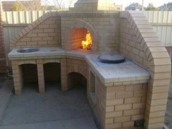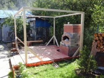إذا تم تحديد منطقة بها سياج مصنوع من مادة غير قابلة للاحتراق لوضع شرفة المراقبة ، فيمكن استخدام هذا العائق كجدار للمبنى مع موقد. بفضل هذا النهج ، سيكون البناء أرخص وسيتم توفير المساحة على الموقع. يمكن استخدام ألواح الرصف كأساس وأرضية..