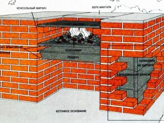 عندما تتشبث خرسانة الأساس المؤسس ، يمكن أن يبدأ بناء الفرن. أولاً ، تم وضع موقف لها. يمكن استخدام المساحة الموجودة أسفل الحامل لتخزين الحطب. يتم تكديس الطوب في صفوف وفقًا للمخطط. ستكون العناصر الموضوعة على طول المحيط هي القاعدة. ثم تحتاج إلى وضع الفرن الذي سيتم فيه طهي الكباب. سيكون ارتفاع سبعة طوب كافياً لهذا الغرض..