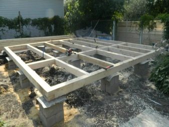 قبل الشروع في بناء الجدران والأرضيات ، تأكد من أن دعامات الأساس معزولة بمواد التسقيف. يتم تثبيت تأخر الجزء الأرضي على الحافة ، بينما يجب ألا تقل الفجوات عن 50 سم. كل هذا مغطى بكتل خشبية صغيرة. يتم ربط الزوايا وفقًا لمخطط “شوكة الأخدود”.