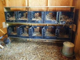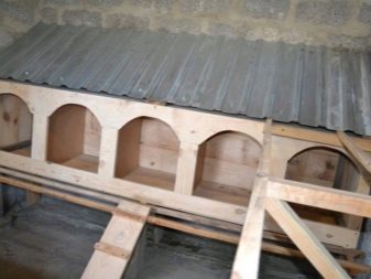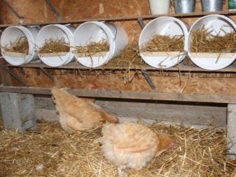 إذا تم استخدام سقيفة تحت بيت الدجاج ، يتم ترتيب أعشاش بداخلها لوضع الدجاج البياض. بالنسبة لـ 10 دجاجات ، يكفي تثبيت 3 أعشاش. يجب أن يكون حجم العش الأول 35×35 سم.