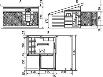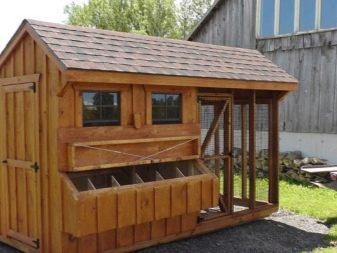 مع هذا الترتيب لهيكل بيت الدواجن ، يتم الاحتفاظ بالحرارة داخل المبنى حتى في البرد القارس. وبفضل موقع النوافذ على الجانب الجنوبي ، يدخل الحد الأقصى من الضوء الطبيعي إلى الداخل..