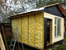 التالي مثبتة الرفوف. لهذا الغرض ، يتم أيضًا استخدام الألواح ذات الأبعاد 10×5 سم ، ويجب أن تكون المسافة بينهما 1 متر ، كما يتم عمل ربط في الجزء العلوي. من المستحسن تقوية الزوايا. الكسوة الجدار مصنوعة من جانبين. يجب وضع العزل في الداخل ، ويفضل أن يكون في طبقتين. كحماية إضافية ضد الحيوانات المفترسة ، يوصى بتغطية العزل بشبكة دقيقة.