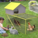 من المهم جدًا أن تكون منطقة المشي محمية من المطر جزئيًا على الأقل.. بالنسبة لفصل الشتاء ، من حيث المبدأ ، يمكن إزالته أو تغطيته بمظلة كبيرة. بالمناسبة ، يجب أيضًا وضع المغذيات والشاربين في منطقة المشي..
