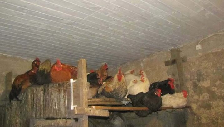 الأسقف داخل حظائر الدجاج مغلفة بألواح. فوقهم يجب أن توضع عازلة. كتناظرية ، يمكنك استخدام الطين الموسع أو نشارة الخشب.