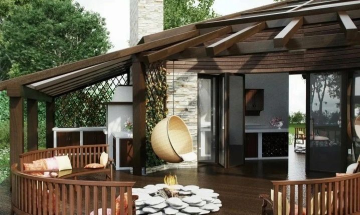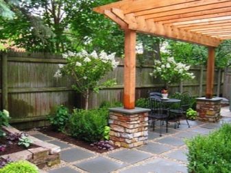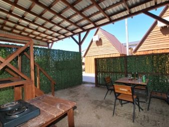 - بالقرب من المطبخ الصيفي ، في ظل اصطناعي ، توجد منطقة ترفيهية.