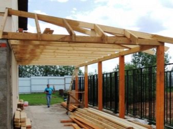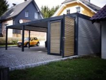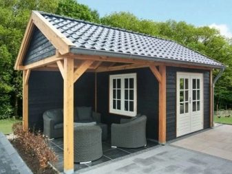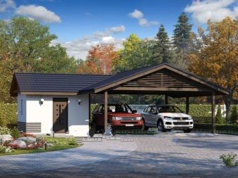عند بناء كتلة المرافق ، يمكن تضمين المظلة على الفور في المشروع ويمكن بناء كلا الهيكلين تحت سقف واحد. سيوفر هذا النهج المواد ووقت البناء ، ونتيجة لذلك ، سيحصل المالك على مبنى متناغم. أولئك الذين لم يستغلوا هذه الفرصة في الوقت المناسب يقومون بإرفاق القناع بالمبنى الخارجي المكتمل بالفعل. أو العكس ، يقومون بتثبيت منزل التغيير بجوار مظلة مبنية..