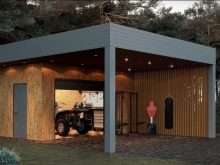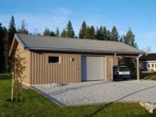 إذا تم التخطيط لمرآب لسيارة ، فيجب اختيار المكان بالقرب من البوابة أو مع سهولة الوصول إليها. لا ينبغي أن يتزامن الطريق إلى موقف السيارات مع الجزء الذي تتم زيارته بنشاط من الفناء. لم يتم تقريب المبنى من نوافذ مبنى سكني حتى لا يعيق المنظر.